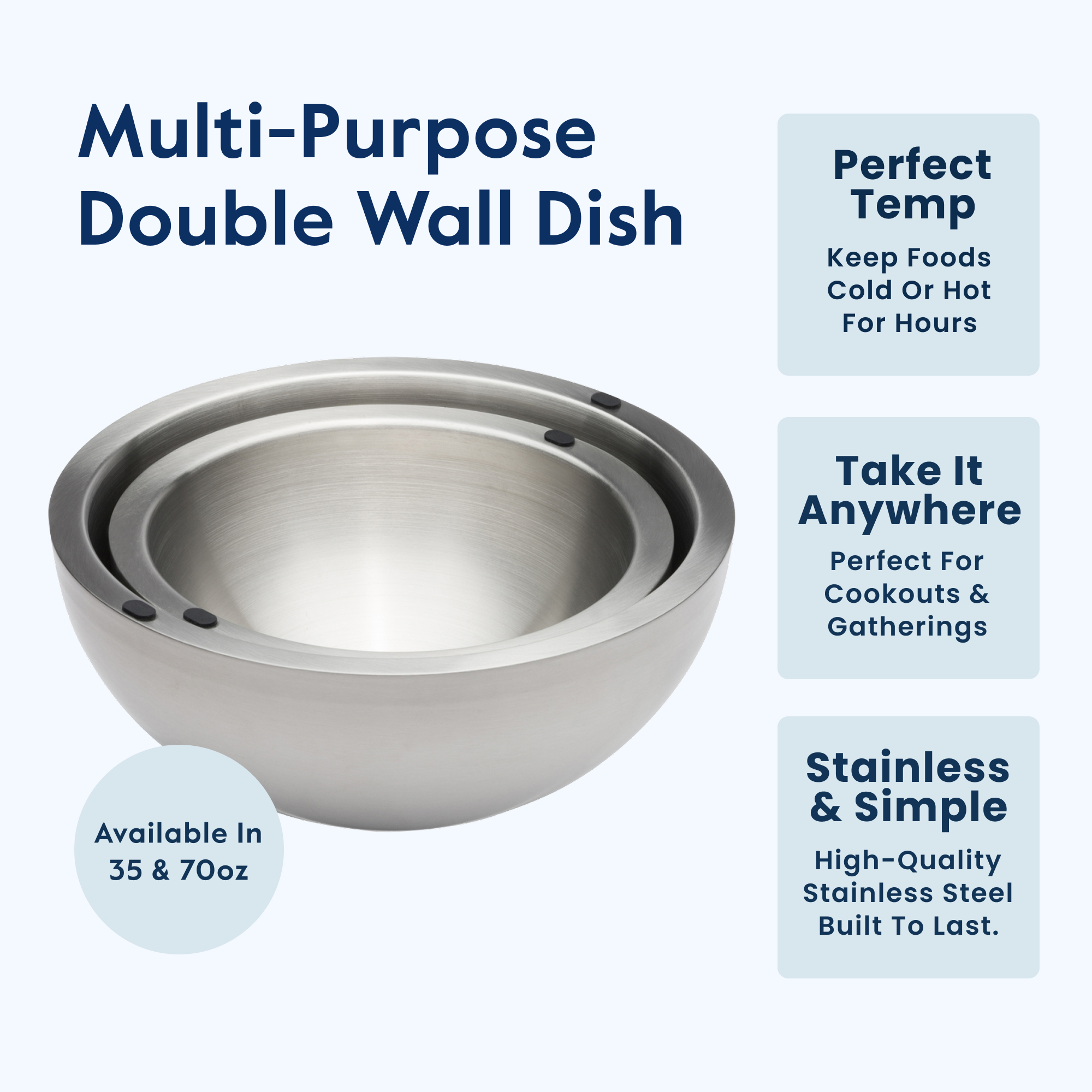 Multiple sizes for any gathering: 35 oz & 70 oz