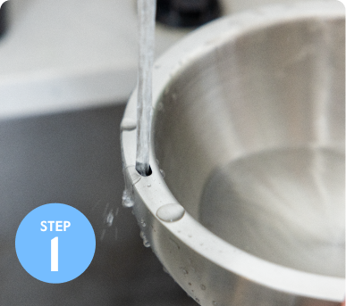 Fill with water through the small openings—about ¾ full. For hot dishes, pour in pre-heated water and skip freezing. Ready in 10 seconds.
